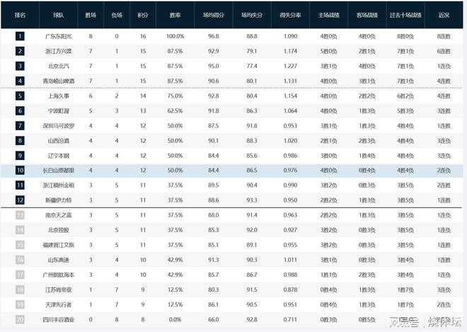 CBA积分榜:广东8连胜登顶,广厦反超北京升第二,四川队破罐破摔