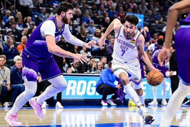 进入加时赛比拼,亚历山大率先中投得分,马尔卡宁三分反超比分,亚历山大2+1夺回领先优势。双方接连打铁,亚历山大助攻霍姆格伦暴扣取得4分优势,乔治上篮命中,霍姆格伦被犯规两罚一中,森萨博隔扣2+1追到122-122打停雷霆。亚历山大上篮不中,霍姆格伦补扣,米哈伊柳克三分不中,亚历山大抢到篮板被犯规两罚全中,乔治三分不中,多尔特被犯规也是两罚一中扩大5分优势。克莱顿三分续命,亚历山大继续被犯规罚球扩大优势,最终雷霆加时险胜爵士。
